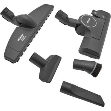 L’aspirateur-traineau MIELE Complete C3 Comfort XL Powerl est équipé d’une brosse universelle adaptée à tous les types de sol. D’autres accessoires sont également inclus, comme la brosse pour parquet Twister XL, adaptée aux sols plus fragiles, un suceur à coussin, un suceur plat, ou encore une brosse spécifique pour les meubles. Ceux-ci se fixent directement sur l’appareil, tout comme le tube d’aspiration, et restent ainsi toujours à portée de main. Quant au câble, il s’enroule rapidement par une simple pression.