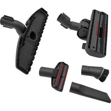 - Brosse principale : Brosse 2 en1 (sols durs et moquettes)