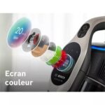 L’aspirateur BOSCH Unlimited 10 BSS1041GHF est conçu pour offrir un confort d’utilisation inégalé avec son écran TFT couleur qui facilite le contrôle de l’appareil et propose des tutoriels intuitifs. La capacité de 0,4 l du bac à poussière, équipé du Compress Slider, permet de réduire la fréquence de vidage grâce à la compression efficace de la poussière. Le système de filtration HEPA et le filtre à vie assurent un air purifié, tandis que le système rotatif d’auto-nettoyage du filtre simplifie l’entretien.