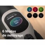 - Détail sur la puissance d’aspiration: : Elle peut varier en fonction du type de sols (parquet, carrelage, tapis, moquette) que vous aspirez et du mode utilisé (standard, éco, boost)