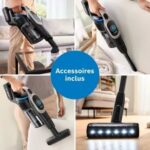 - Brosse motorisée avec éclairage LED : Elle s’adapte à tous les types de sols. Son éclairage LED permet de mieux voir la poussière et plus loin pour un nettoyage plus efficace