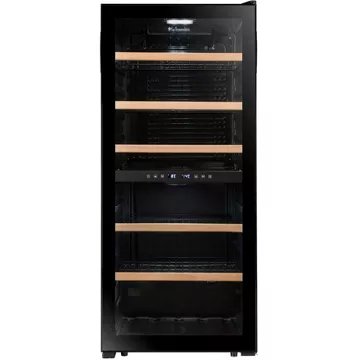 La cave à vin de service La Sommelière LS102DZBLACK, avec sa capacité de 102 bouteilles, s’impose comme un choix idéal pour les amateurs de vin exigeants. Son design noir élégant, rehaussé d’une porte vitrée réversible en double vitrage traité anti-UV, s’intègre avec raffinement dans tout intérieur moderne. L’éclairage LED blanc avec interrupteur sublime chaque bouteille, tandis que le froid brassé garantit une température homogène et une hygrométrie régulée par le principe d’hygrodynamie. Le filtre à charbon actif assure un air pur, exempt d’odeurs indésirables.