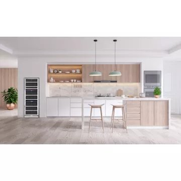- Type d’appareil : cave à vin polyvalente, elle combine plusieurs plages de températures en fonction des zones, soit pour vieillir le vin soit pour le mettre à la température de service. Idéale pour les oenophiles et collectionneurs de grands crus.