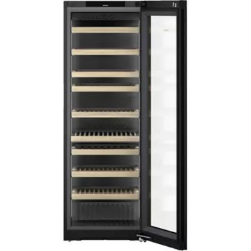 L’esthétique de la LIEBHERR WPgbi 7472 ne laisse pas indifférent avec sa porte en verre isolant et ses côtés noirs élégants. L’éclairage intérieur LED avec variateur et les clayettes en bois montées sur rails télescopiques allient praticité et mise en valeur de vos vins. La technologie PowerCooling assure une température homogène grâce à un air brassé filtré par le système FreshAir à charbon actif, qui élimine les odeurs pour préserver le bouquet des vins. La connectivité Smart Home via la SmartDeviceBox incluse et la serrure électronique renforcent l’aspect moderne et sécurisé de l’appareil. Enfin, la porte réversible et la poignée barre intégrée verticale soulignent la flexibilité et l’adaptabilité de cette cave à vin, conçue pour s’intégrer parfaitement dans tout intérieur raffiné.