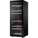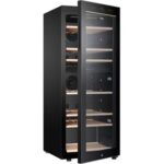 Type de porte : vitrée, permettant de visualiser facilement les bouteilles sans ouvrir la porte, réduisant ainsi la circulation de l’air et les variations de température. Le traitement anti-UV protège efficacement le contenu.