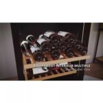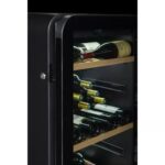 - Type de porte : vitrée, permet de visualiser facilement les bouteilles sans avoir à ouvrir la porte, ce qui réduit la circulation de l’air dans la cave et donc la variation de la température. Le traitement anti-uv protège le contenu.