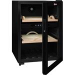 • Type de porte : vitrée, permet de visualiser facilement les bouteilles sans avoir à ouvrir la porte, ce qui réduit la circulation de l’air dans la cave et donc la variation de la température. Le traitement anti-uv protège le contenu.