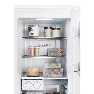 - Type de froid : ventilé (no frost), permet une répartition homogène du froid. Il offre un dégivrage automatique pour ne jamais avoir à le faire manuellement