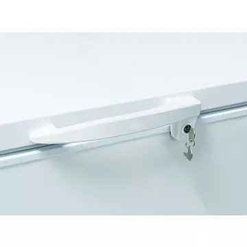 Ce congélateur coffre de 700 Litres Cool Head avec un couvercle supérieur ordinaire est pourvu d’un dégivrage manuel avec le drainage de l’eau produite lors du dégivrage et un refroidissement statique. Une lampe LED l’éclaire en l’ouvrant. Ce congélateur 700 Litres, en acier laqué blanc pour la face externe et aluminium gaufré pour la face interne, possède un joint d’étanchéité amovible. Congélateur bahut fourni équipé d’une serrure de sécurité, d’un panneau de commande numérique avec alarme et 3 paniers.