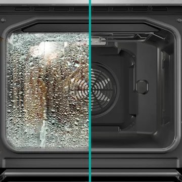 - Nettoyage : vapeur (hydrolyse), il suffit de verser au fond la cavité de l’eau et du liquide vaisselle. Le four chauffe quelques minutes, l’eau se transforme en vapeur et ramollit les graisses. Un coup d’éponge pour retirer les résidus tombés dans la cavité. Ce système est écologique et économique.