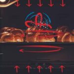• Mode de cuisson : chaleur tournante brassée, le four est équipé de 2 résistances, une en bas (sole), une en haut (voûte) et d’une hélice placée au fond de la cavité qui permet de brasser l’air, pour une cuisson rapide et une repartition homogène de la chaleur.