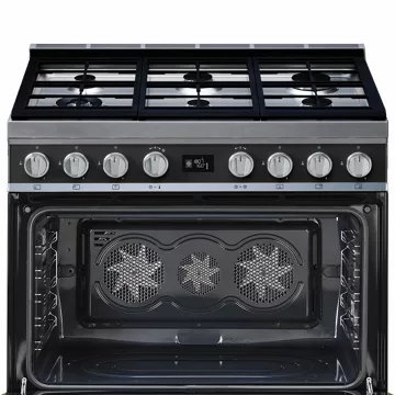 CENTRE DE CUISSON PORTOFINO, 90 CM, 6 BRULEURS GAZ, PYROLYSE, DOUBLE CHALEUR TOURNANTE, TRIPLE TURBINE, ANTHRACITE