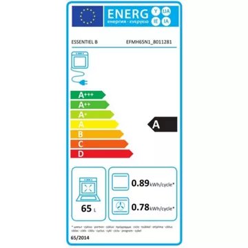 Le Four encastrable ESSENTIELB EFMH65N1 est conçu pour offrir une expérience culinaire optimale grâce à son système de chaleur tournante brassée. Équipé de deux résistances et d’une hélice au fond de la cavité, ce four assure une répartition homogène de la chaleur, permettant une cuisson rapide et uniforme de vos plats. Avec une capacité généreuse de 65 litres et 7 fonctions de cuisson, il répond aux besoins des gourmets exigeants. Sa classe énergétique A garantit une utilisation économe en énergie, avec une consommation réduite en convection naturelle (0.89 kWh/cycle) et en chaleur tournante (0.78 kWh/cycle).