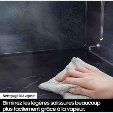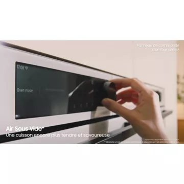 Avec un éventail de 40 programmes automatiques, le four pyrolyse Samsung NV7B4550UAB vous offre une solution complète pour satisfaire toutes vos envies culinaires. La cuisson » vapeur naturelle « vous permet, en versant de l’eau sur le plateau dédié, de conserver l’humidité naturelle de vos aliments, qui restent ainsi moelleux et tendres à l’intérieur. En combinant la technologie de contrôle de température statique et de double capteur de température dans les cavités supérieure et inférieure, la cuisson » air sous-vide « cuit délicatement vos aliments qui gardent ainsi tout leur tendreté et leur jus. La sonde de cuisson vous indiquera si la cuisson de votre viande est bien à coeur !