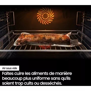 Avec un répertoire de 40 programmes automatiques, le four pyrolyse Samsung NV7B5755SAS est l’appareil parfait pour les amateurs de cuisine comme les cordons bleus. Vos enfants aiment la viande tendre à l’intérieur et craquante à l’extérieur ? Ou les viennoiseries croustillantes ? La cuisson » Vapeur naturelle » vous permet d’obtenir une cuisson dorée à l’extérieur et moelleuse à l’intérieur, tout en évitant le dessèchement. Pour des aliments croustillants et moelleux avec une simple touche d’huile, mettez en route la technologie » Air Fry « .