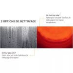 - Avantage vapeur (hydrolyse) : Il suffit de verser au fond la cavité de l’eau et du liquide vaisselle. Le four chauffe quelques minutes, l’eau se transforme en vapeur et ramollit les graisses. Un coup d’éponge pour retirer les résidus tombés dans la cavité. Ce système est écologique et économique.
