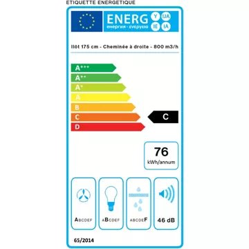 • Débit d’air maxi : 375 – idéal pour une cuisine de 15m².