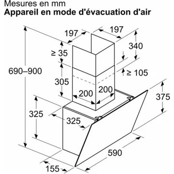 - Type de hotte : : décorative murale inclinée – évacuation et recyclage