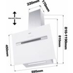 - Type de hotte : décorative murale inclinée, combine style et fonctionnalité. Sa conception permet de mieux gérer l’espace au-dessus de la zone de cuisson. Elle évite de devenir un obstacle dans l’espace de cuisson et n’obstrue pas la vue, rendant plus facile la préparation des plats.