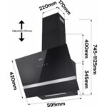 - Type de hotte : décorative murale inclinée, combine style et fonctionnalité. Sa conception permet de mieux gérer l’espace au-dessus de la zone de cuisson. Elle évite de devenir un obstacle dans l’espace de cuisson et n’obstrue pas la vue, rendant plus facile la préparation des plats.