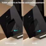 - Arrêt temporisé : oui, permet de programmer une durée de fonctionnement après la cuisson. Une fois cette durée écoulée, la hotte s’éteint automatiquement, offrant ainsi un moyen pratique d’économiser de l’énergie et de prolonger la purification de l’air après la cuisson.