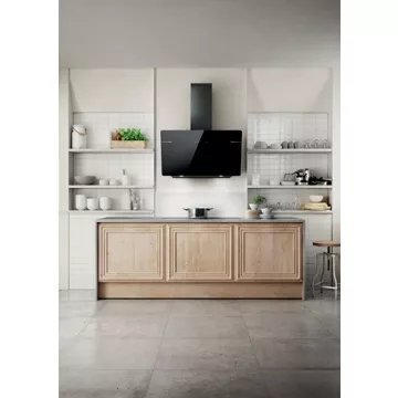 - Type de hotte : décorative murale inclinée, combine style et fonctionnalité. Sa conception permet de mieux gérer l’espace au-dessus de la zone de cuisson. Elle évite de devenir un obstacle dans l’espace de cuisson et n’obstrue pas la vue, rendant plus facile la préparation des plats.