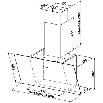 - Type de hotte : : décorative murale inclinée – évacuation et recyclage