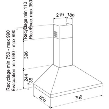 - Type de hotte : : décorative murale – évacuation et recyclage