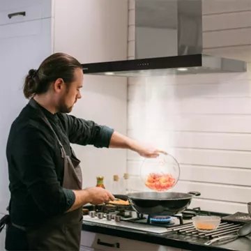 - Choisir la bonne puissance : dans une cuisine ouverte, où l’air circule dans le salon, optez toujours pour une hotte aspirante d’au moins 600 m³/h pour garantir une efficacité optimale. Pour une cuisine fermée, multipliez le volume (L x l x H) par 12 pour obtenir la capacité d’aspiration nécessaire.