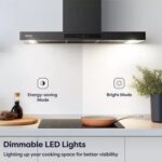- Arrêt temporisé : oui, permet de programmer une durée de fonctionnement après la cuisson. Une fois cette durée écoulée, la hotte s’éteint automatiquement, offrant ainsi un moyen pratique d’économiser de l’énergie et de prolonger la purification de l’air après la cuisson.