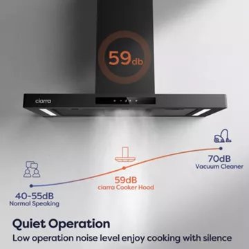 La hotte aspirante murale CIARRA CD9102B-P au design épuré apporte une touche d’élégance à tous les styles de cuisine !
