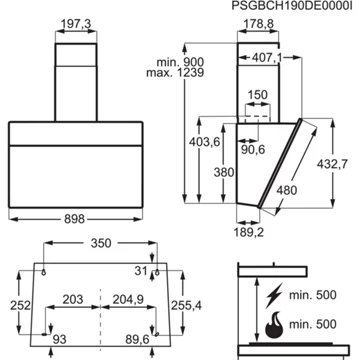 - Largeur : 90 cm, pour une zone de cuisson allant jusqu’à 90 cm de largueur.