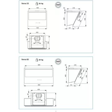 - Largeur : 85 cm, pour une zone de cuisson allant jusqu’à 90 cm de largueur.