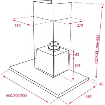 - Débit d’air maxi : 614 – idéal pour une cuisine de 25m².