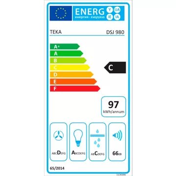 La TEKA DSJ 980 ne se contente pas d’être performante, elle est également équipée de fonctionnalités pratiques telles que deux lampes LED pour un éclairage optimal de votre plan de travail, et trois filtres en aluminium faciles à entretenir. Un témoin lumineux de fonctionnement indique l’activité de la hotte, tandis que le clapet anti-retour inclus évite les retours d’odeurs. Pour une installation personnalisée, la hotte peut être complétée par des kits de recyclage et des filtres à charbon en option. Avec des dimensions harmonieuses (hauteur ajustable de 670 à 1000 mm, largeur de 900 mm et profondeur de 480 mm) et un poids net de 15,33 kg, cette hotte s’intègre parfaitement dans toute cuisine moderne, tout en respectant une classe énergétique C.