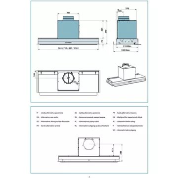 Conçue pour s’adapter aux différentes configurations de cuisine, la hotte VIRGOLA3631 est compatible avec des épaisseurs de bois de 16 à 19 mm et peut être installée en évacuation horizontale ou en mode recyclage. Elle inclut un filtre à charbon de série, avec la possibilité d’ajouter un filtre à charbon – zéolite en option pour une filtration optimisée. Avec une classe énergétique B, elle assure une consommation maîtrisée tout en maintenant un niveau sonore entre 47 dB(A) et 65 dB(A) selon la vitesse sélectionnée. Le respect des distances minimales du plan de travail, identiques pour les cuissons électriques et à gaz, garantit une sécurité et une efficacité maximales. La hotte FALMEC VIRGOLA3631 est un choix judicieux pour les utilisateurs exigeants, recherchant un appareil performant et respectueux de l’environnement.