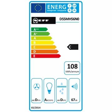 La hotte NEFF D55MH56N0 est conçue pour offrir un confort maximal grâce à ses touches de commande électroniques intuitives et son éclairage LED économique, qui procure une luminosité de 244 lux avec une température de couleur de 4000 K. Les deux lampes LED de 1 W chacune allient performance et basse consommation énergétique, classées A en efficacité d’éclairage.