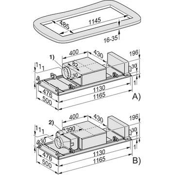 • Type de hotte : : encastrable plafond – évacuation et recyclage