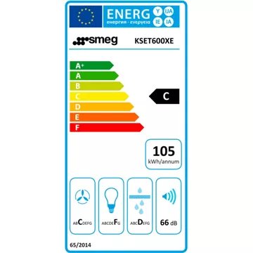 Avec une capacité d’aspiration allant jusqu’à 581 m³/h, la hotte SMEG KSET600XE garantit un environnement de cuisine agréable en éliminant efficacement vapeurs et odeurs. Elle offre trois vitesses d’aspiration, adaptées à tous les types de cuisson, et une classe d’efficacité énergétique B, assurant une consommation maîtrisée. L’éclairage LED de 3 W avec une température de couleur de 3500 °K crée une ambiance lumineuse confortable tout en étant économique.