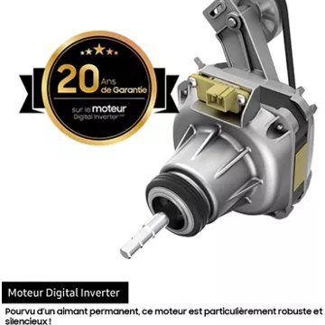 - Type de moteur : induction (avec courroie) faible consommation, silencieux