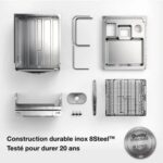 - Avantage de l’inox : L’inox est un matériau de haute résistance gage de qualité et de durabilité. En plus, l’inox permet d’éviter les mauvaises odeurs !
