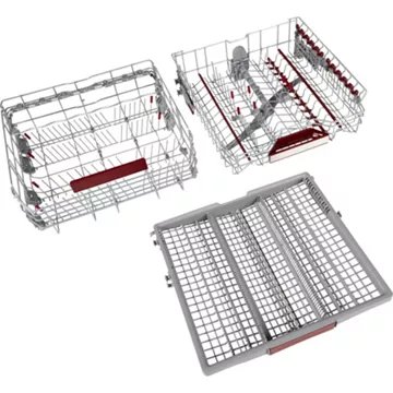 - Avantage du panier supérieur réglable en hauteur : Permet de laver des plats de grandes tailles ou de grands verres à pieds.