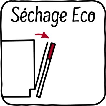 - Type de séchage : Echangeur thermique, réservoir d’eau sur la paroi du lave-vaisselle qui permet d’améliorer le séchage et évite que les verres se fragilisent en conservant leurs brillances.
