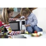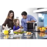 Ce micro-ondes multifonction est doté d’une capacité de 32 litres et d’un plateau tournant en verre de 31,5 cm. Il utilise des puissances allant de 1 000 W pour le micro-ondes à 1 100 W pour le gril et 2 500 W pour la convection. Il est donc très performant, quelle que soit la cuisson utilisée.