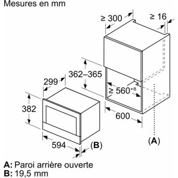 - Dimensions d’encastrement l x h x p : 56.8 x 38.2 x 30 cm