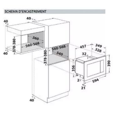 - Hauteur niche d’encastrement : Micro ondes hauteur 38 cm