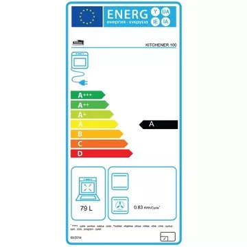 - Valeurs du label énergie : Label énergie A, Consommation en convection naturelle 0,78 kW, Consommation en chaleur tournante 0,83 kW