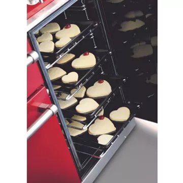 - Mode de cuisson : chaleur tournante brassée, le four est équipé de 2 résistances, une en bas (sole), une en haut (voûte) et d’une hélice placée au fond de la cavité qui permet de brasser l’air, pour une cuisson rapide et une repartition homogène de la chaleur.