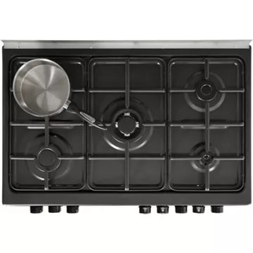 Doté de 5 foyers à gaz avec des chapeaux de brûleurs en émail mat et des grilles larges en fonte, le GERMANIA BO105 offre une répartition homogène de la chaleur et une stabilité parfaite pour vos ustensiles de cuisine. La table de cuisson comprend des foyers aux puissances variées, dont un brûleur rapide de 2,8 kW et un triple couronne de 3,7 kW, idéal pour les cuissons à haute température. Le four électrique multifonctions de classe énergétique A, avec un volume de 110 litres et un mode de nettoyage par catalyse, garantit une cuisson précise et économique. La sécurité est également au rendez-vous avec l’allumage une main, la sécurité de table et la sécurité gaz de four. Avec le GERMANIA BO105, chaque plat est une réussite, du mijotage délicat aux grillades saisissantes grâce à son grilloir électrique de 2,3 kW.