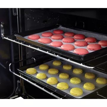 - Nettoyage : catalyse, permet un auto-dégraissage qui fonctionne à partir de 200°C. La graisse sera absorbée pendant la cuisson, vous n’avez plus qu’à passer un coup d’éponge sur la sole du four en fin de cuisson.